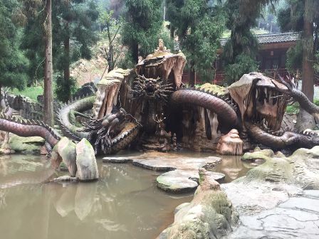 【叠翠瀑布】:谷中群峰叠翠,怪石枚举,那横空而出的瀑布像帘幕一样平常高高垂下,皎洁的水帘映着满山盈盈的翠枝绿树,有如仙界,真是“时有落花至,远随流水香;
